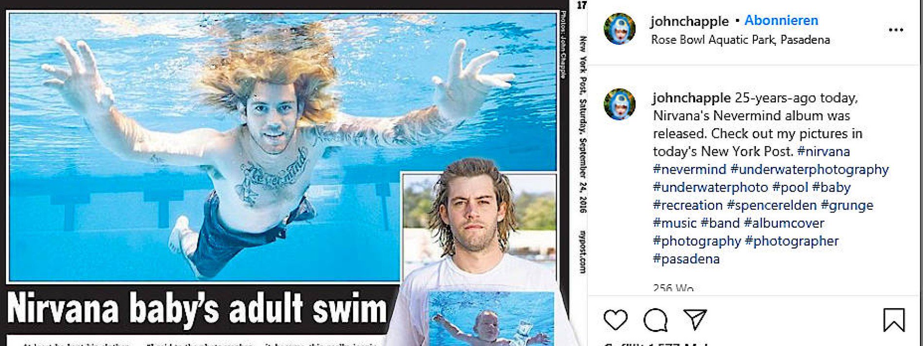Die Rede ist vom Bild auf Nirvanas Kultalbum Nevermind von 1991. Spencer Elden der heute. Auf Nevermind schwimmt ein nacktes Baby im Pool.